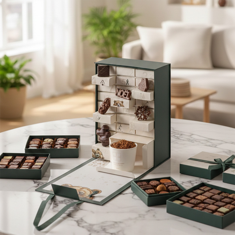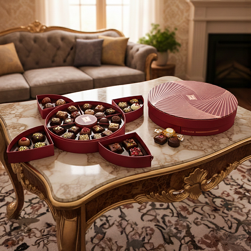 Our custom cardboard chocolate boxes feature innovative paper craftsmanship, blending high-precision die-cutting with luxury finishes like tactile embossing and foil stamping. We utilize premium, sustainable paperboards to create sophisticated structures—from seamless magnetic closures to bespoke inserts—that ensure both product protection and a high-end unboxing experience. These meticulous details enhance brand appeal, turning eco-friendly packaging into a powerful competitive advantage.From Idea to Delivery