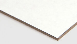 Chipboard crafted from recycled paper pulp, featuring a smooth white surface designed for high-quality printing.